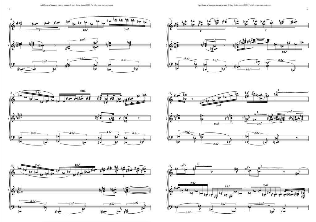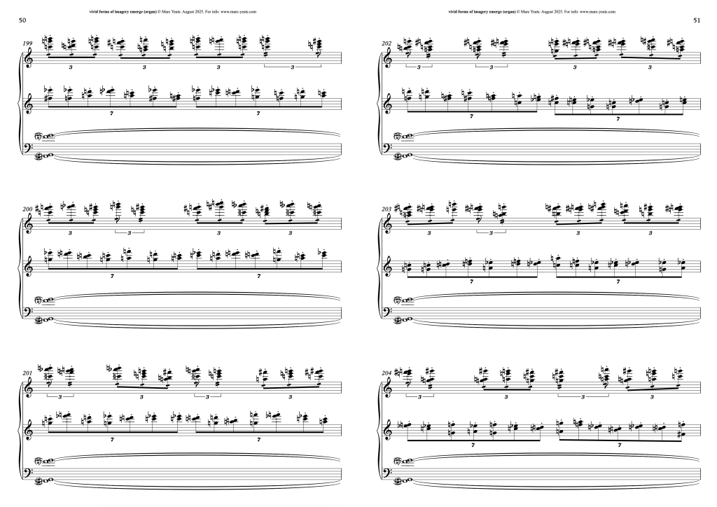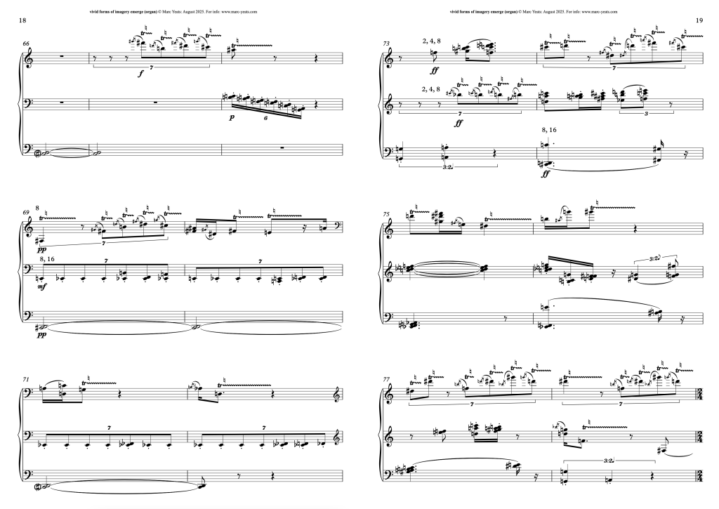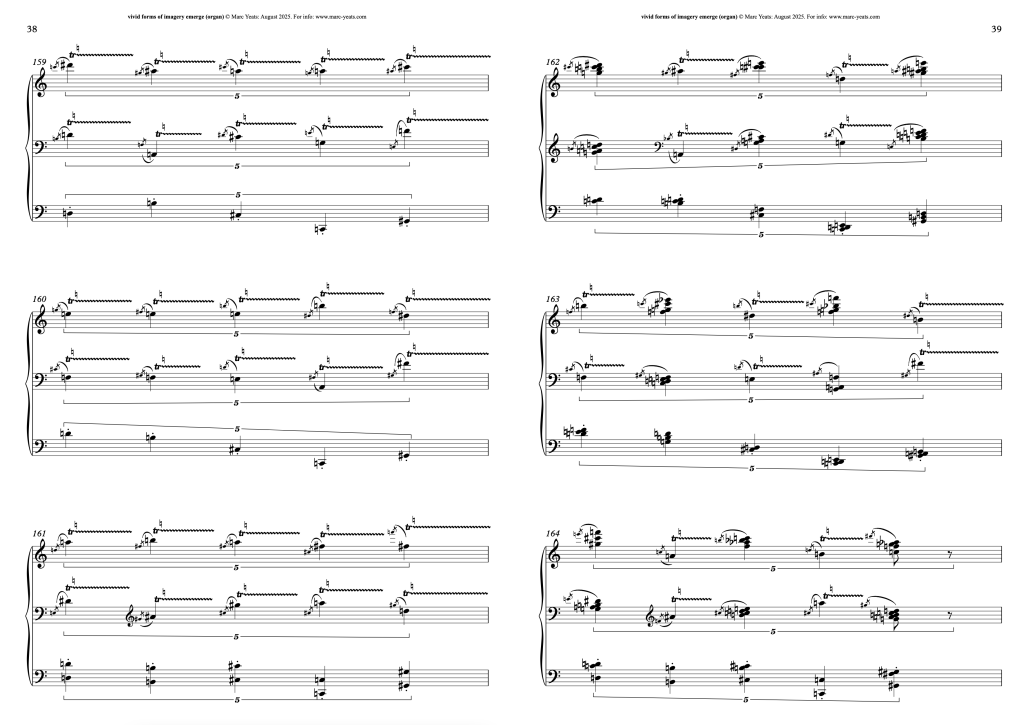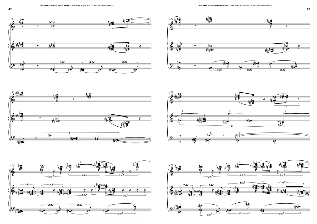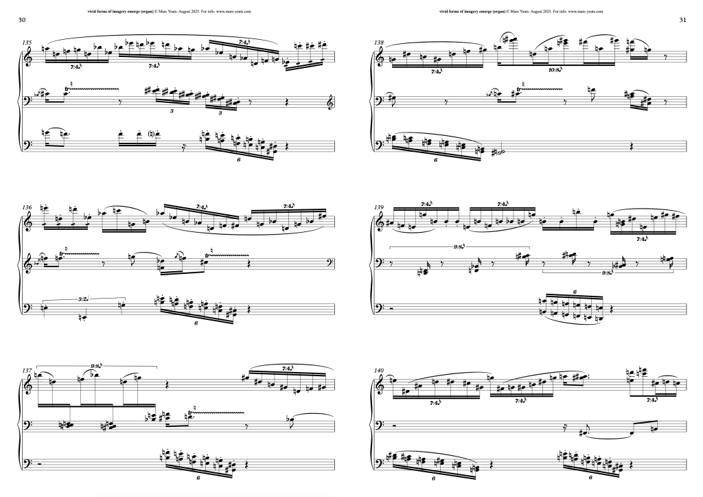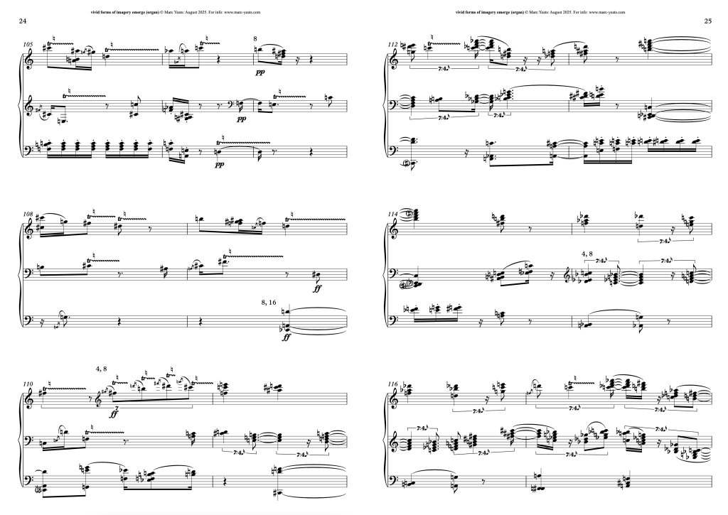 Registration: Suggested registrations are provided as a starting point, reflecting my initial vision for tonal relationships. These are not prescriptive; I encourage you to select registrations that realise varied and intense colourations, tailoring them to your organ and interpretive approach.